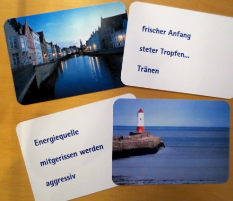 Obwohl die aufgedeckten Stichwörter ja zu einem anderen Fotomotiv entwickelt wurden, staunst du, welche Gefühle und Gedanken dir kommen, wenn du das Foto und die ursprünglich gar nicht dazu vorgesehenen Stichwörter betrachtest. Gerade durch den Kontrast entstehen manchmal faszinierende Einfälle.