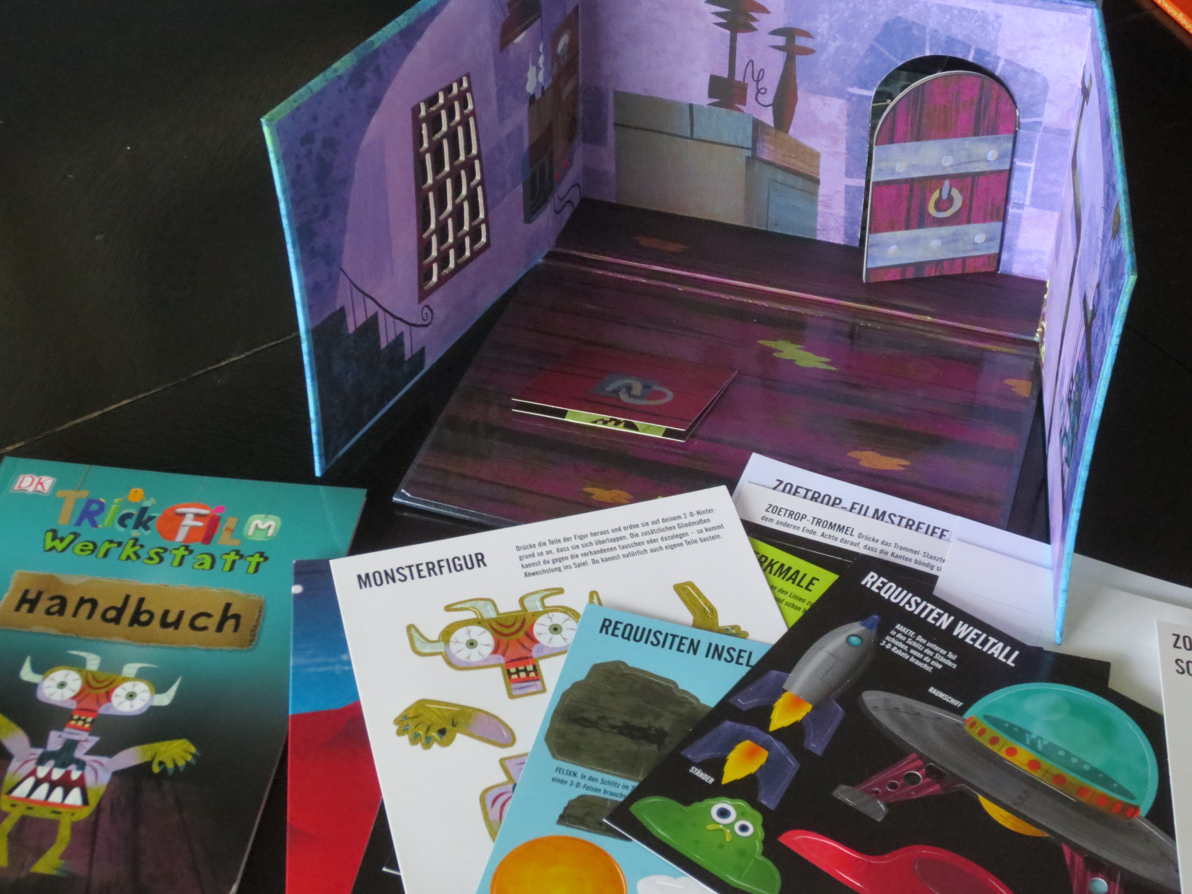 Trickfilme faszinieren Kinder. Und was ist spannender, als selbst einmal einen Animationsfilm zu drehen? Diese einzigartige und umfangreiche Praxisbox macht's möglich! Schon die Aufmachung ist ein echter Hingucker: Das Handbuch und viele spannende Extras stecken in einer Box, die sich zur Filmkulisse ausklappen lässt. Schau mal!